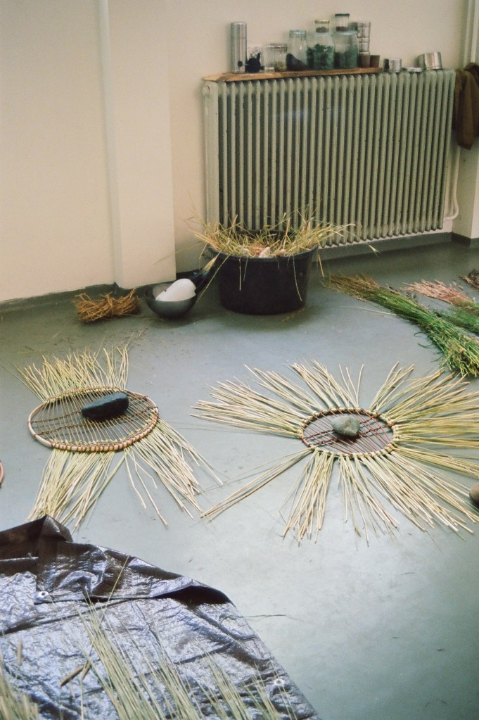Our arms full of different kinds of wild grasses on the way to the studio. All kinds of grasses in different stages of their life. The color differences and dryness shows how grass and time go together.
